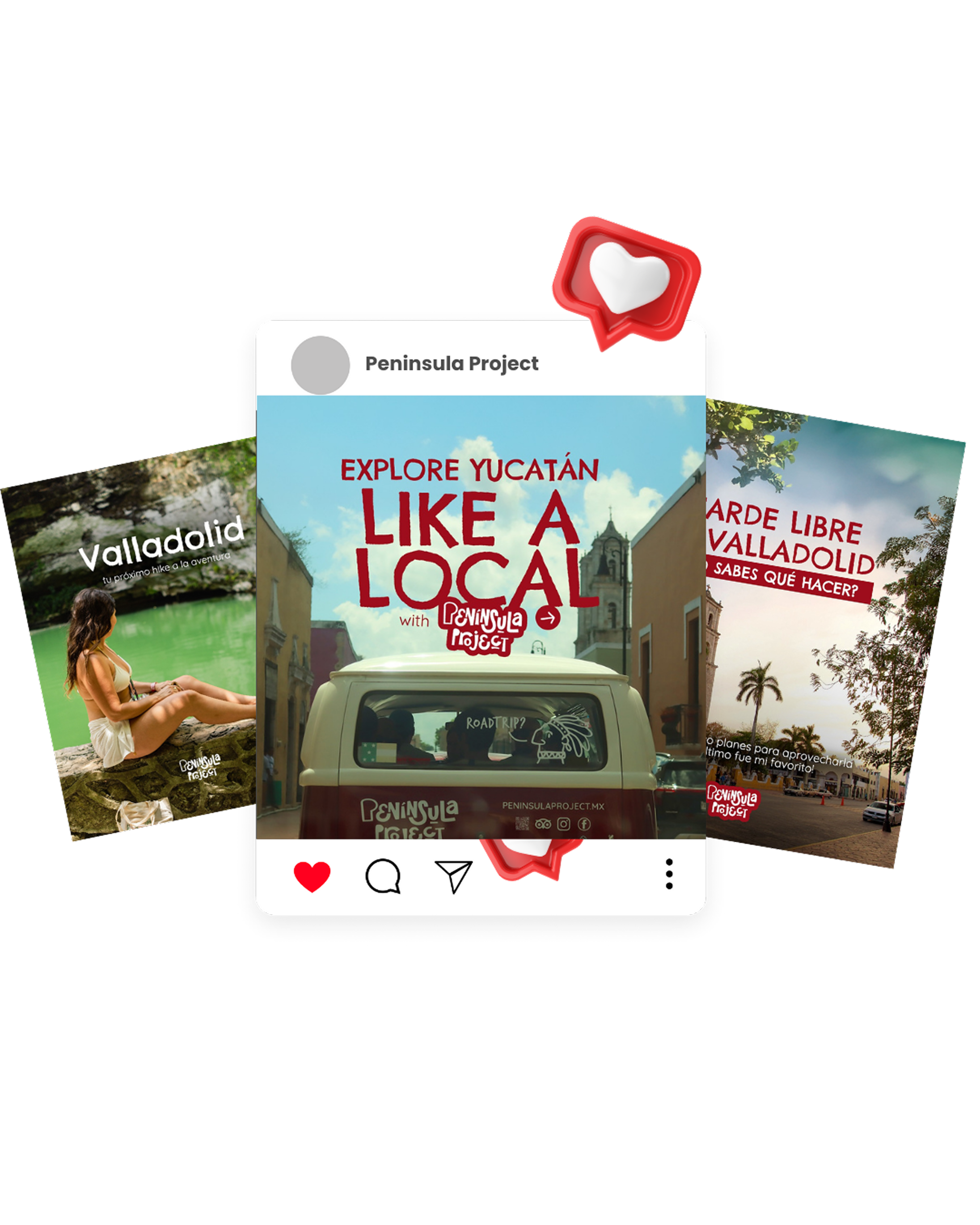 Gestión de redes sociales enfocada en storytelling visual, construcción de comunidad y posicionamiento de experiencias auténticas de viaje en Yucatán.